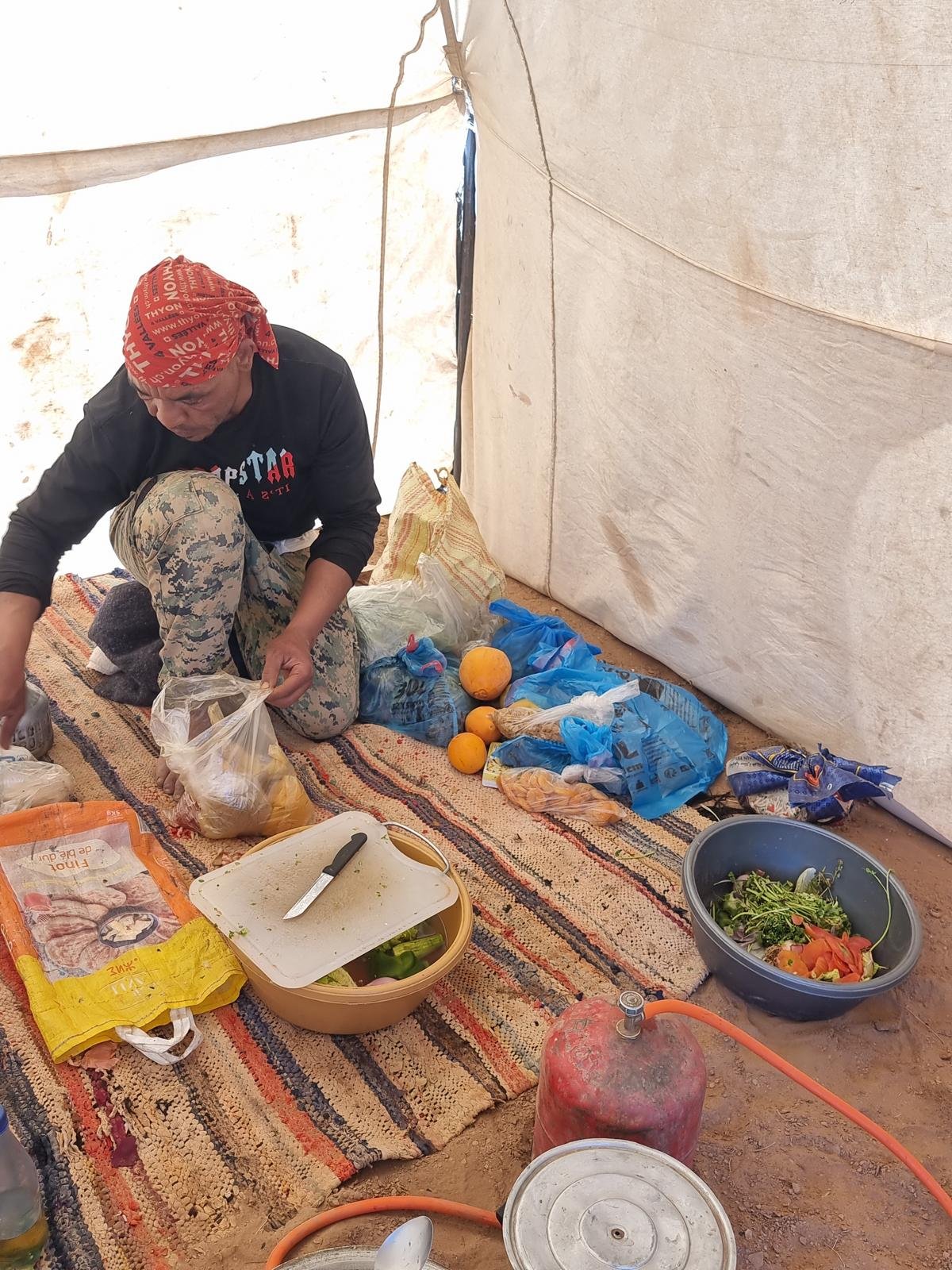 Midi : Déjeuner préparé sur place par notre cuisinier bédouin, avec possibilité de participer à la préparation